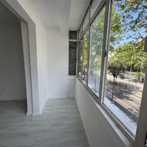 Apartamenti ndodhet ne Pallat ekzistues buze rruges kryesore, pak minuta larg shkolles “Harri Fultz”. Me nje siperfaqe prej 64 m2 ky apartament organizohet ne ambient ndenje e gatimi, ballkon te mbyllur me vetrate xhami, 2 dhoma gjumi, korridor shperndares si dhe nje tualet. Eshte i sapo investuar dhe restauruar.